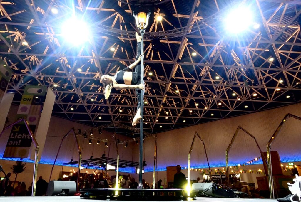 Vertikale Akrobatik an einer rotierenden Laterne mit rasanten Tanzelementen.